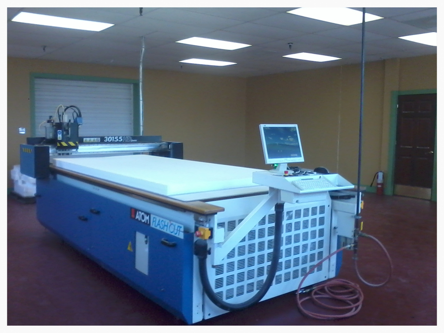 The flashcutter is another truly amazing machine. We simply draw a foam part, load its shape into the machine's computer, and the machine cuts everything from that point on. The machine can also determine the best layout to minimize scrap. You can even send us a DXF formatted file with your requested shape and our machine can cut it. This machine is used mostly for prototyping, low volume orders and shapes that require a straight cut edge. It can also cut very large shapes.This saw can cut up to four inches thick, 60" wide and 120" long.