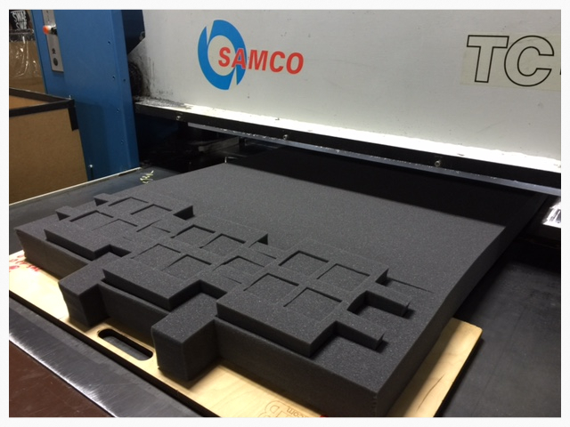 Die cutting is one of the most effecient ways to create a foam shape. Multiple shapes can be grouped together on a indivdual die. This way each hit creates a multiple piece set. Mutiple sets can be produced every minute which makes the die cutter the work horse of foam fabrication.